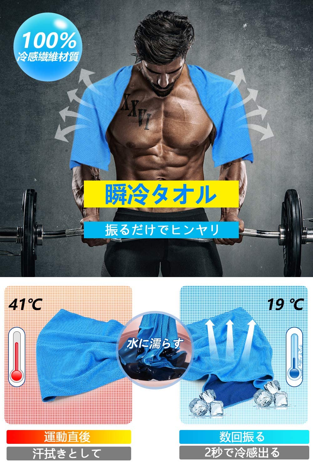 吸水性抜群・スポーツ汗拭き 冷却タオルは普通のタオルと比べ4倍の吸水力を持っています。たっぷり汗をかいても安心。汗拭きクールタオルとして活用して頂き、清涼を感じたい場合は水で濡らして振るだけでその効果を得られます。
