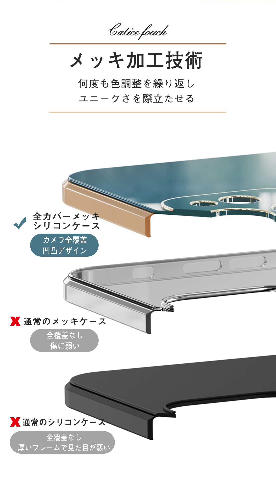 6Dメッキ加工、高級感を演出。 使っている人が多いiPhoneだからこそ、お気に入りのケースに入れて個性をアピール!