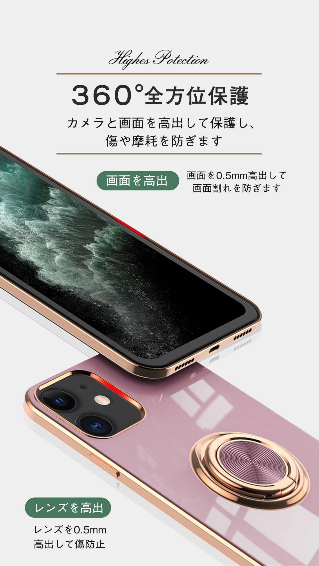 ・カメラまで保護、カメラレンズを傷からしっかりと全面保護。前面フレーム部分は端末よりも高く設計され画面を下にして置いてもスクリーンが擦れず安心。大切なiPhoneを360度全面保護。