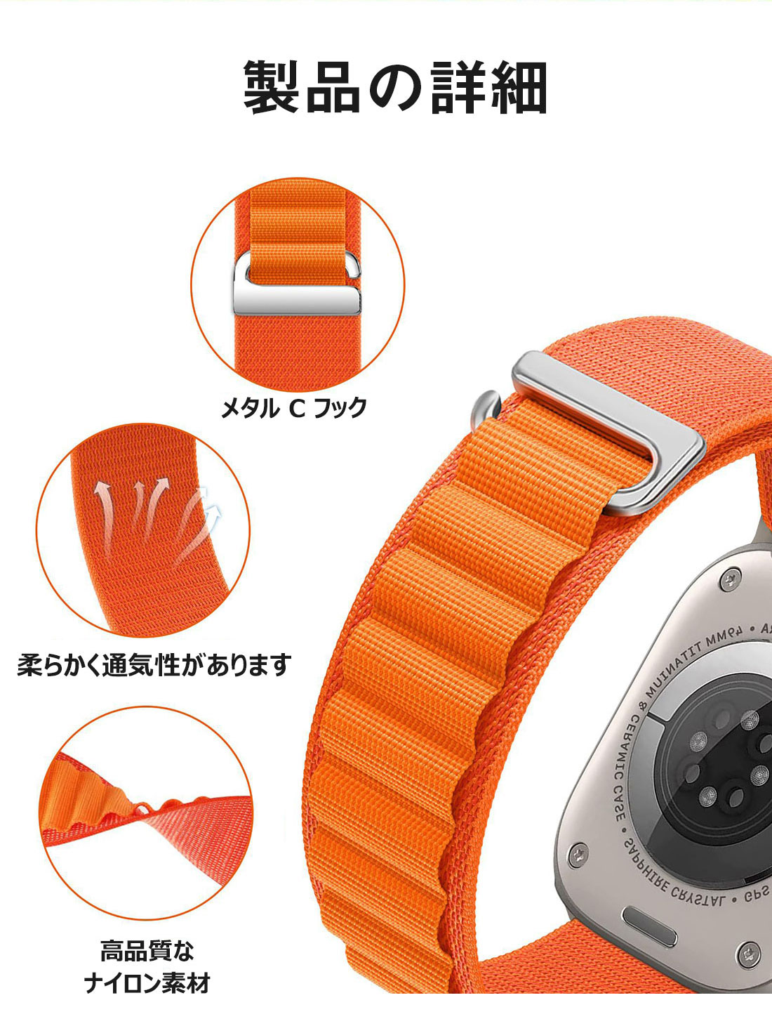 アルパインループ アップルウオッチ バンド apple watch バンド シリーズ9 8 Ultra 7 SE 6 5 4 3 2 1 対応 38mm 40mm 41mm 兼用 42mm 44mm 45mm 49mm ナイロン スポーツ