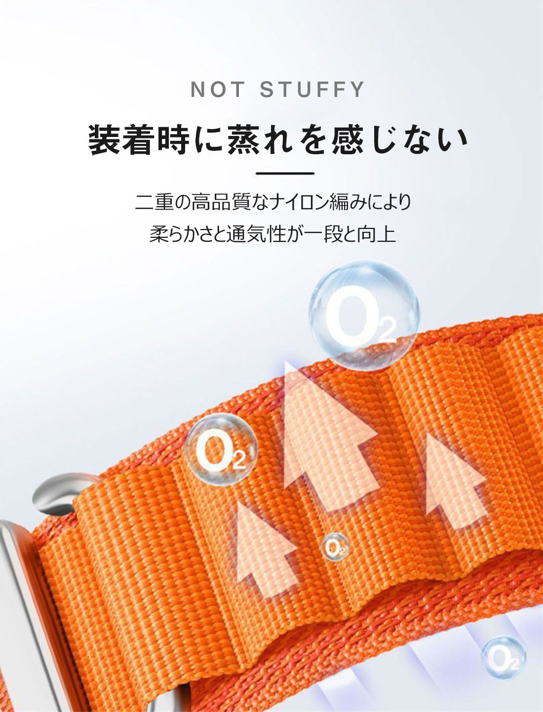 ※2層のナイロンとポリエステル生地をシームレスに織り込むことで、縫い目も切れ目もない強靭のバンド。