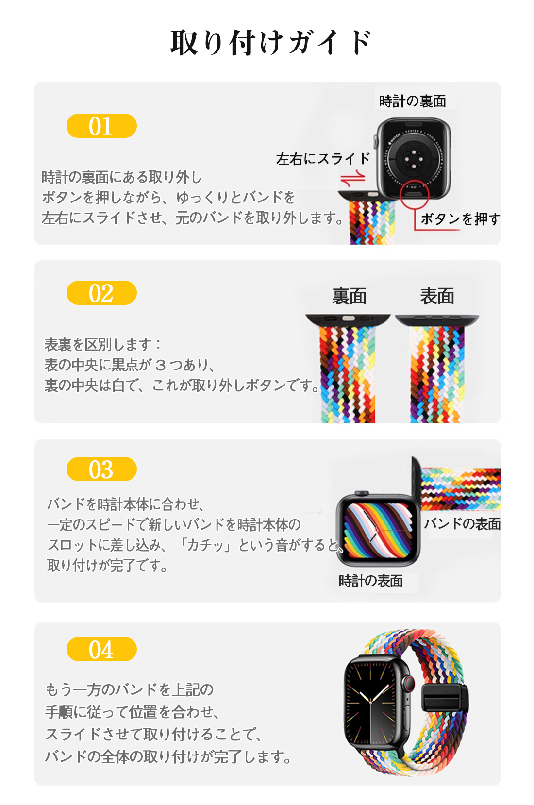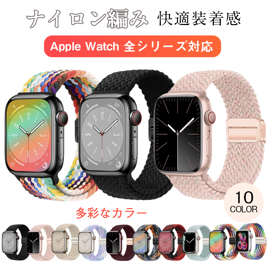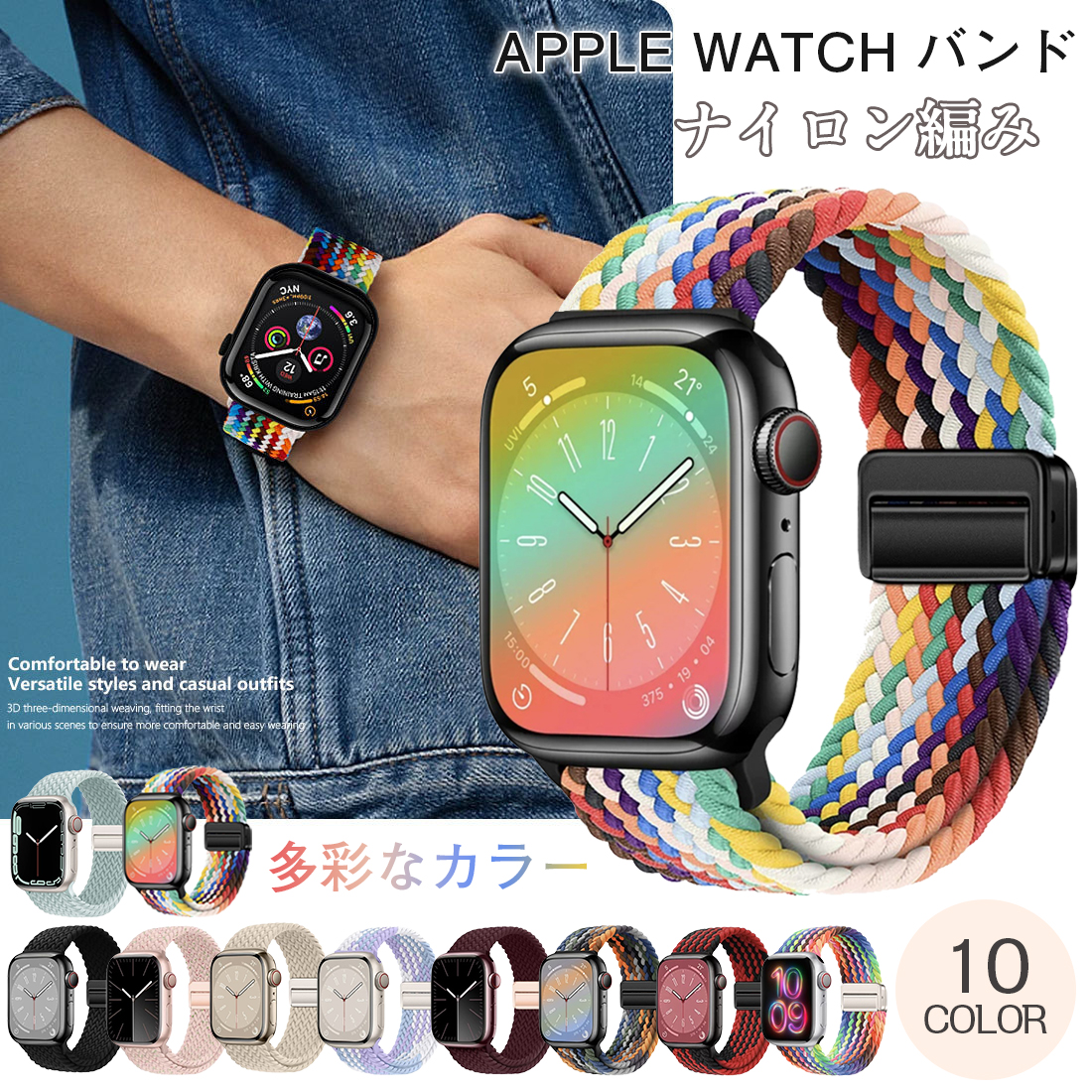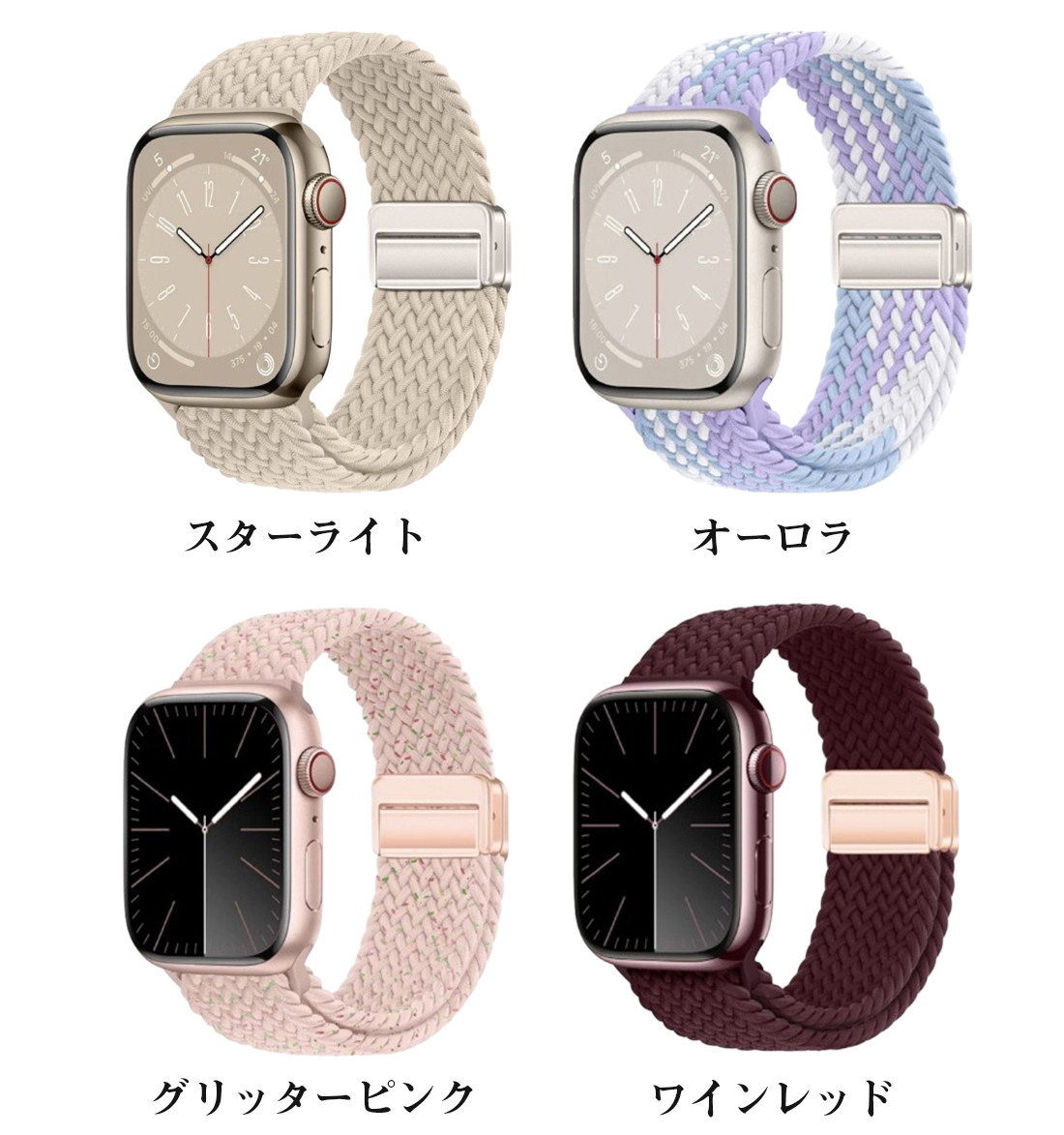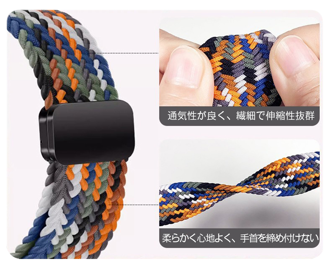 特徴 最新進化アップグレード版のブレイデッドのマグネットで簡単に装着が可能ナイロン編み大人らしくアップルウォッチ用のバンド。春夏にも活躍する女性に人気のカラーが豊富。きれいめからカジュアルまで幅広いコーデに大活躍。