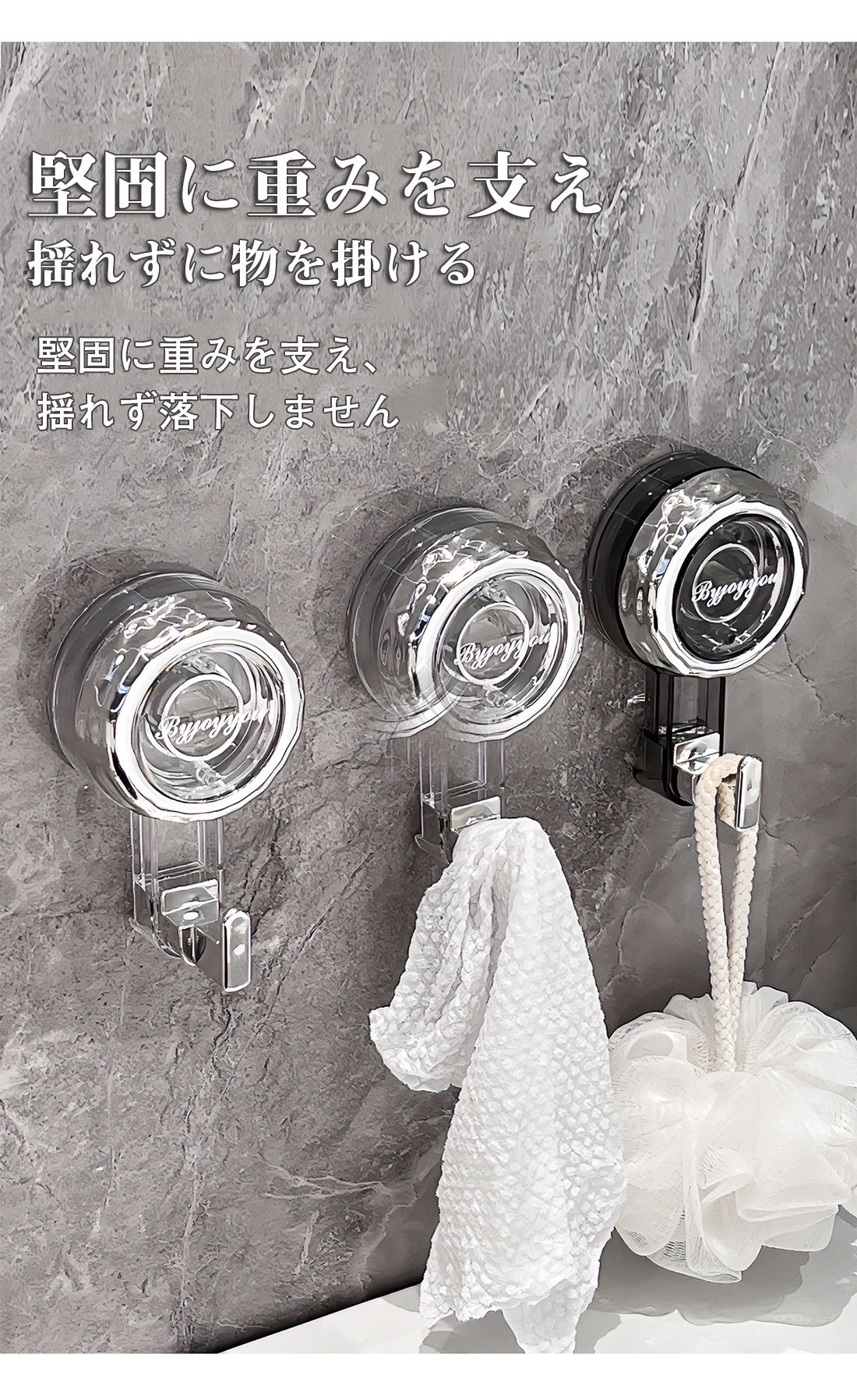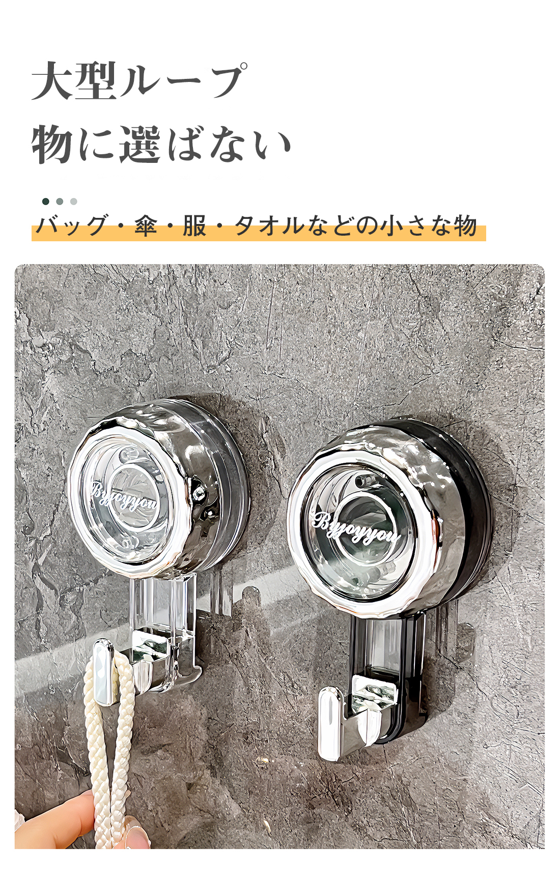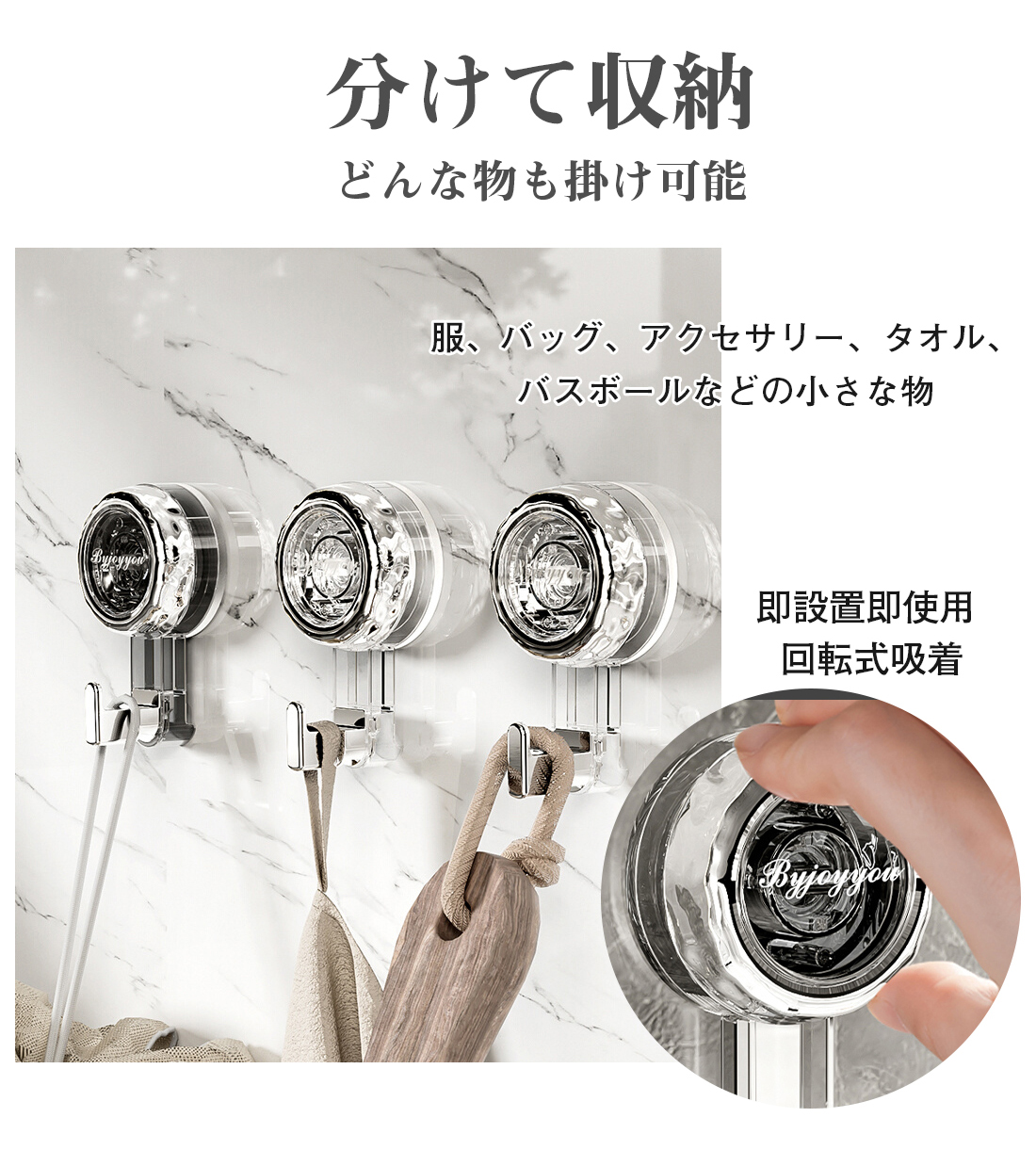 【しっかり吸着落ちにくい】耐荷重5kg、色々吊るせてパワフル