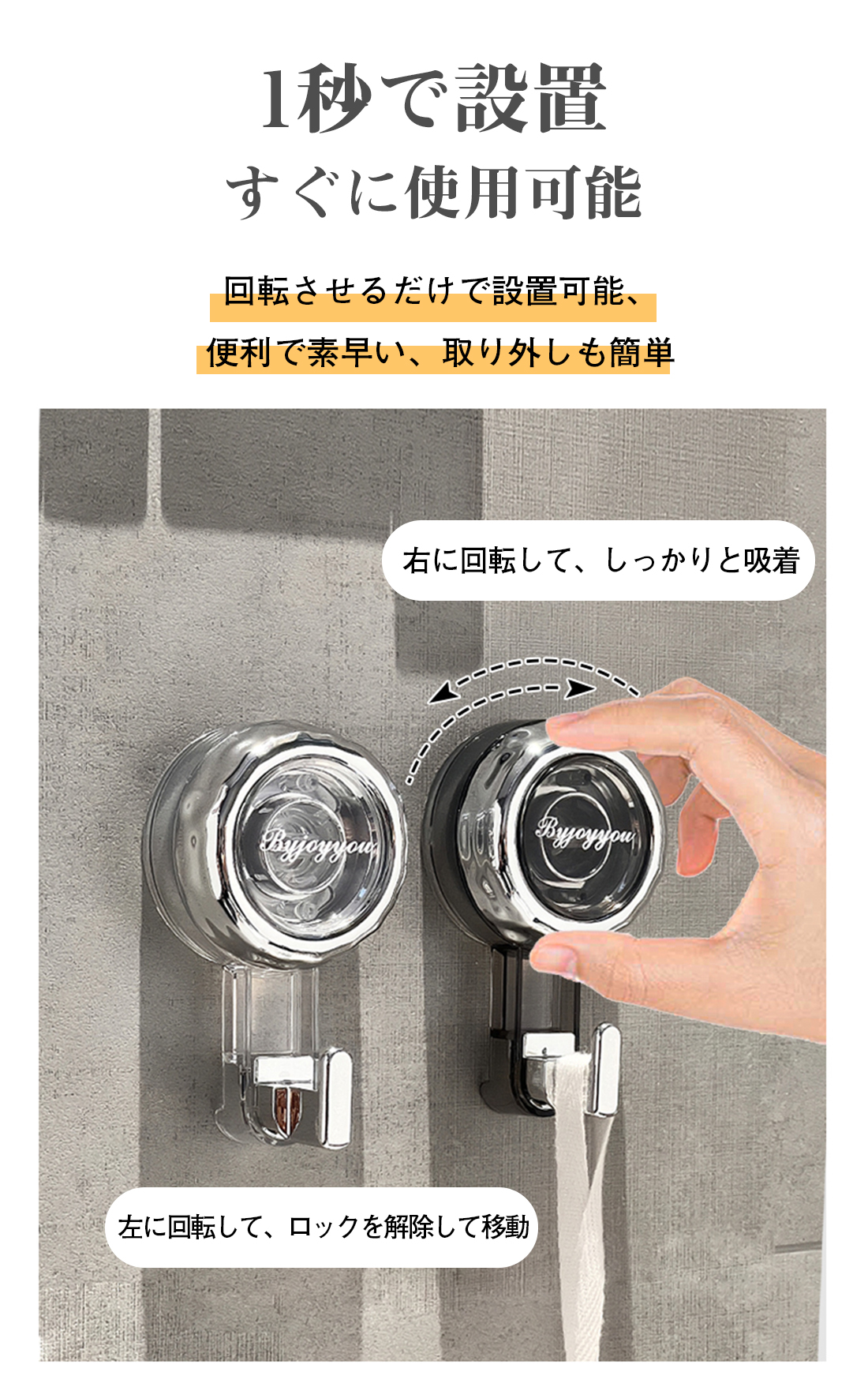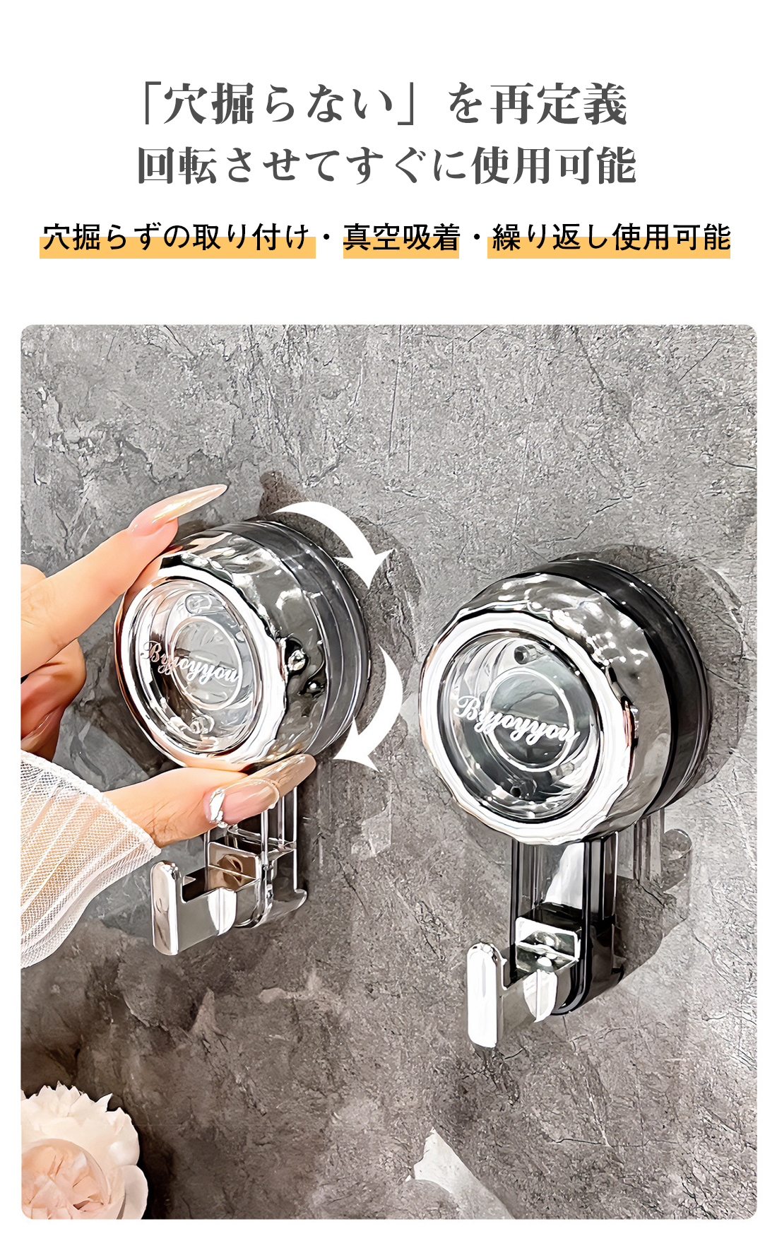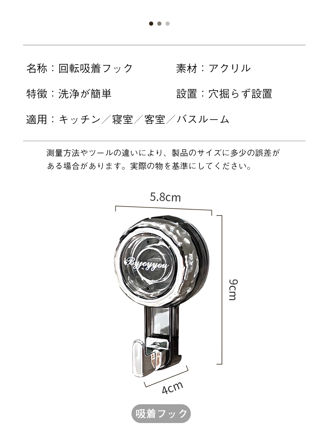 【しっかり吸着落ちにくい】耐荷重5kg、色々吊るせてパワフル