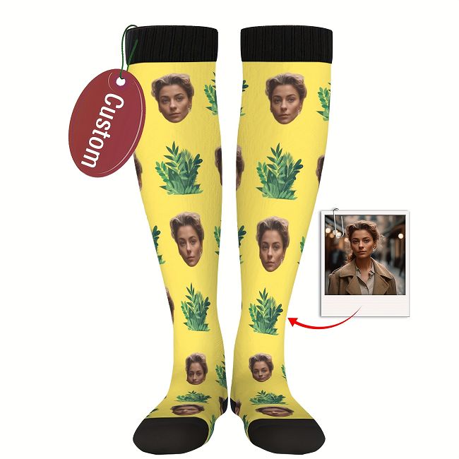 カスタムフェイスソックス カスタマイズされた写真付きのパーソナライズされた面白いギフトソックス 顔と雑草のプリント 男性向けの斬新でトレンディなパーティープレゼントソックス