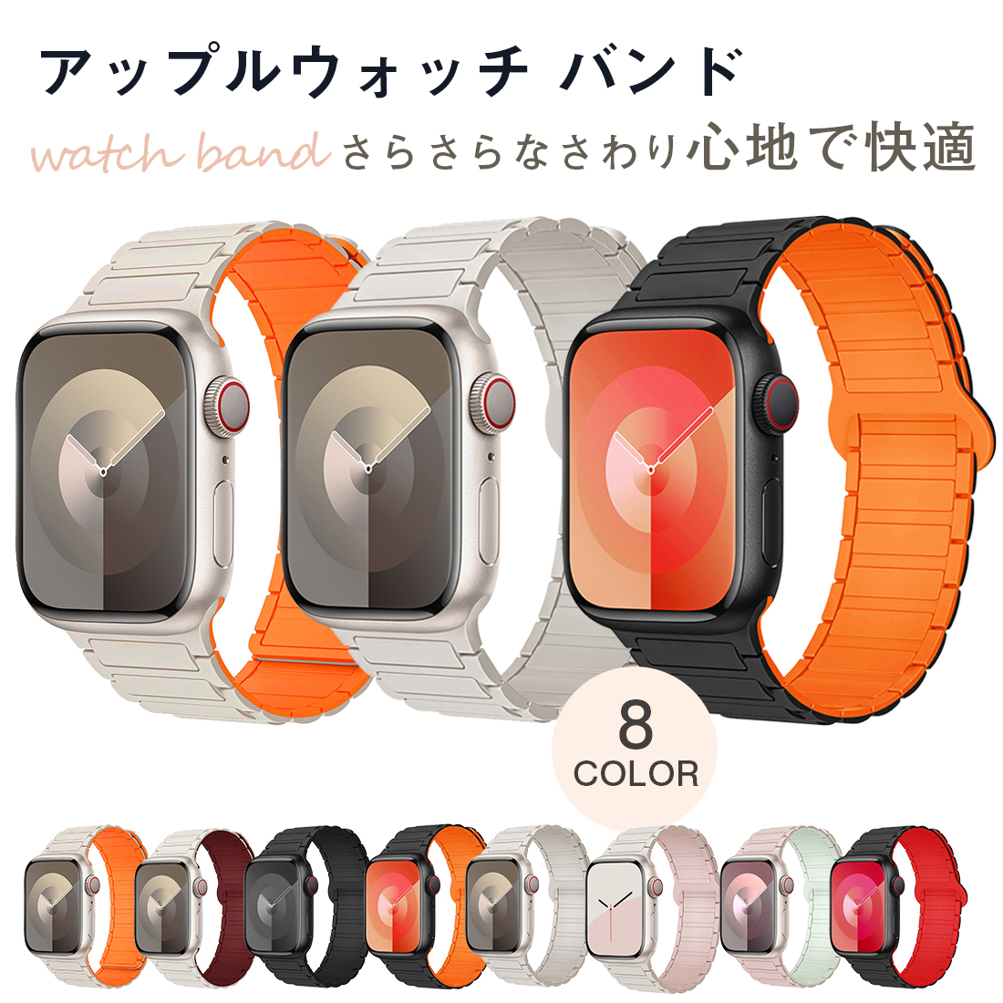アップルウォッチ バンド シリコン マグネット Apple Watch ベルト Series10 9 8 7 6 5 4 3 2 1 SE ultra おしゃれ 磁石 38 40 41 シリコンバンド