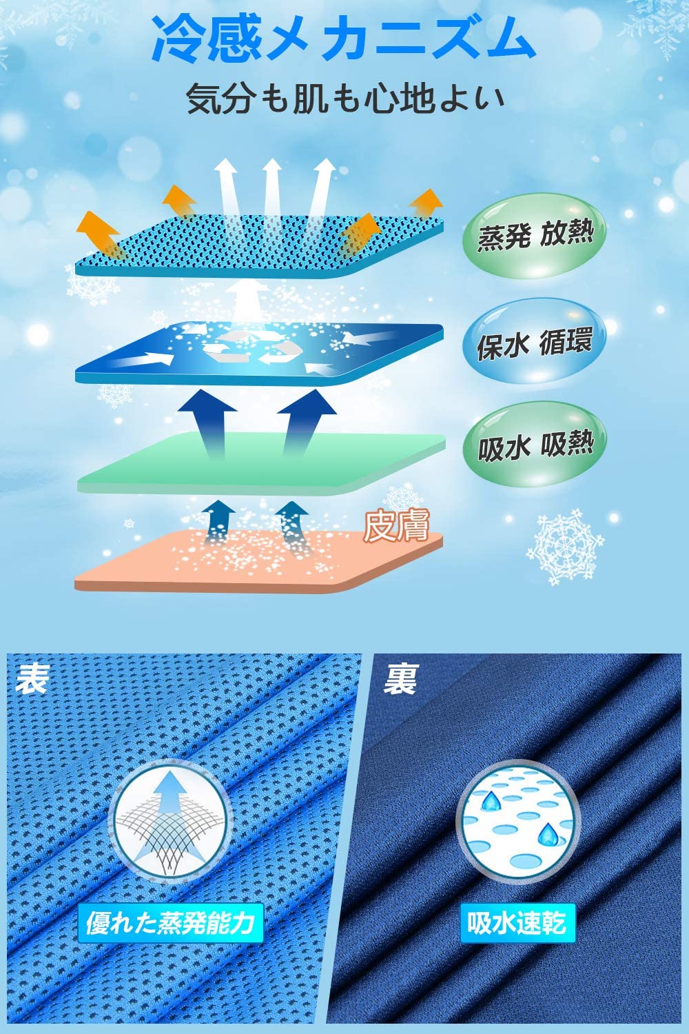 商品詳細冷感・ひんやり感長持ち 100%冷却素材で作られており、持続的な冷感性を持っています。3種の生地を使用した特殊製法で、吸湿、水分循環、蒸発の仕組みを実現、気化熱を効果的に発生させます。
