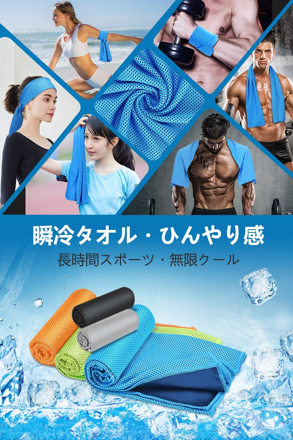 吸水性抜群・スポーツ汗拭き 冷却タオルは普通のタオルと比べ4倍の吸水力を持っています。たっぷり汗をかいても安心。汗拭きクールタオルとして活用して頂き、清涼を感じたい場合は水で濡らして振るだけでその効果を得られます。