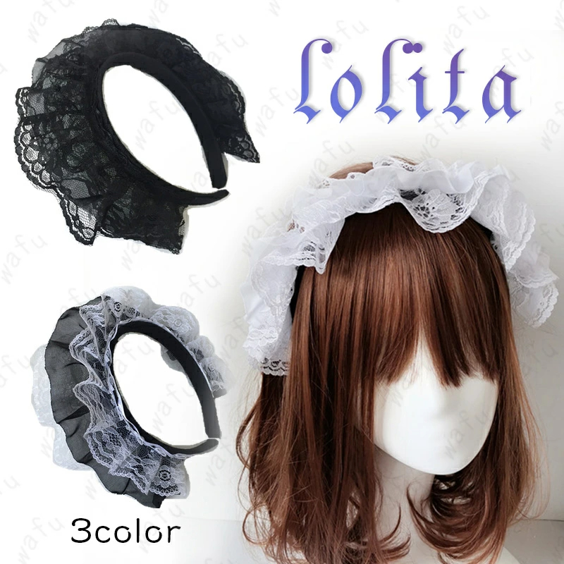 ヘッドドレス ヘッドアクセサリー ヘアバンド カチューシャ コスプレ ゴスロリ メイド リボン レース ヘアアクセ 小物 髪飾り ヘアアクセサリー コスチューム ロリータ ファッション 衣装 レディース /ブラック-アイボリー-ワイン