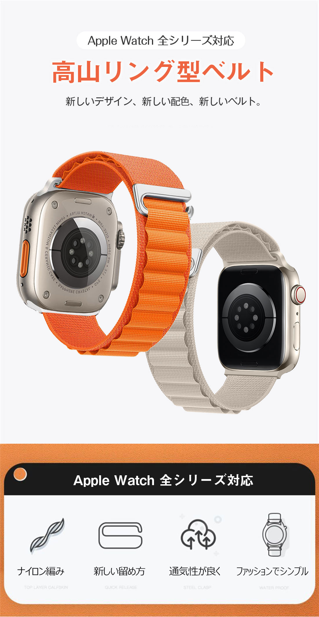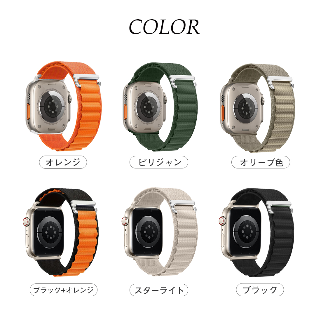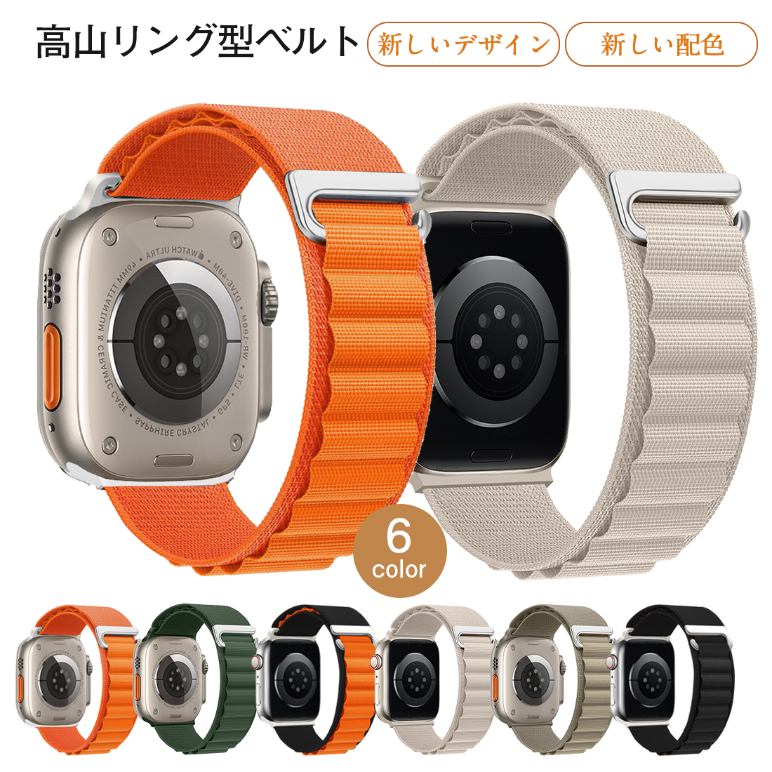 アップルウォッチ バンド アルパインル 腕時計用アクセサリー 腕時計用ベルト バンド 新作 38/40/41/42(Series10)mm用 42(Series3/2/1)/44/45/46/49mm用 スターライト ライトグレー ダークグレー ブルー ダークブルー ライトグリーン グリーン ブルーグリーン ブラック ブラック&オレンジ ピンク ライトパープル パーブル ローズ ワインレッド イエロー オレンジ オレンジ&スターライト オリーブ インディゴ