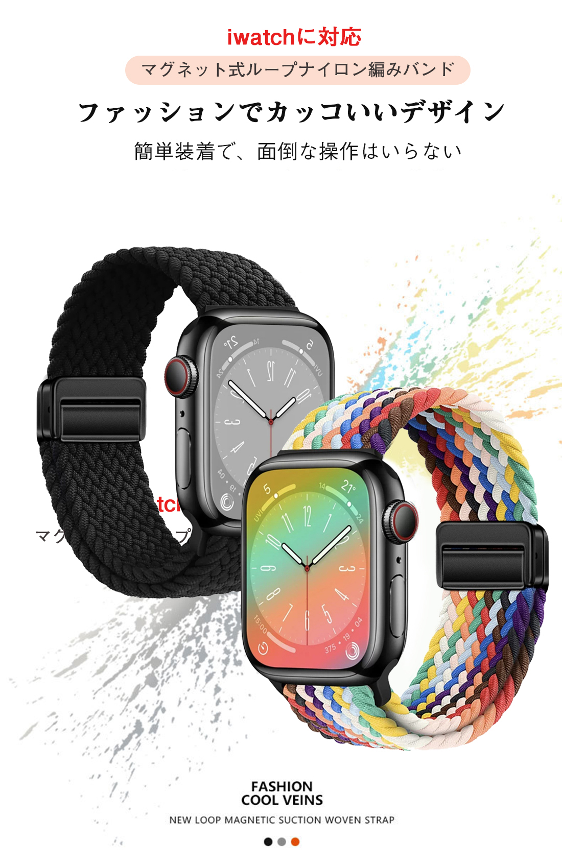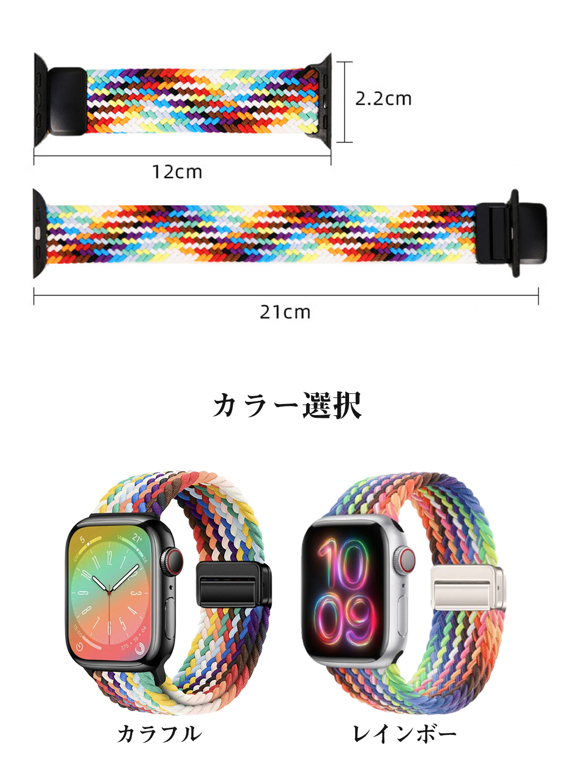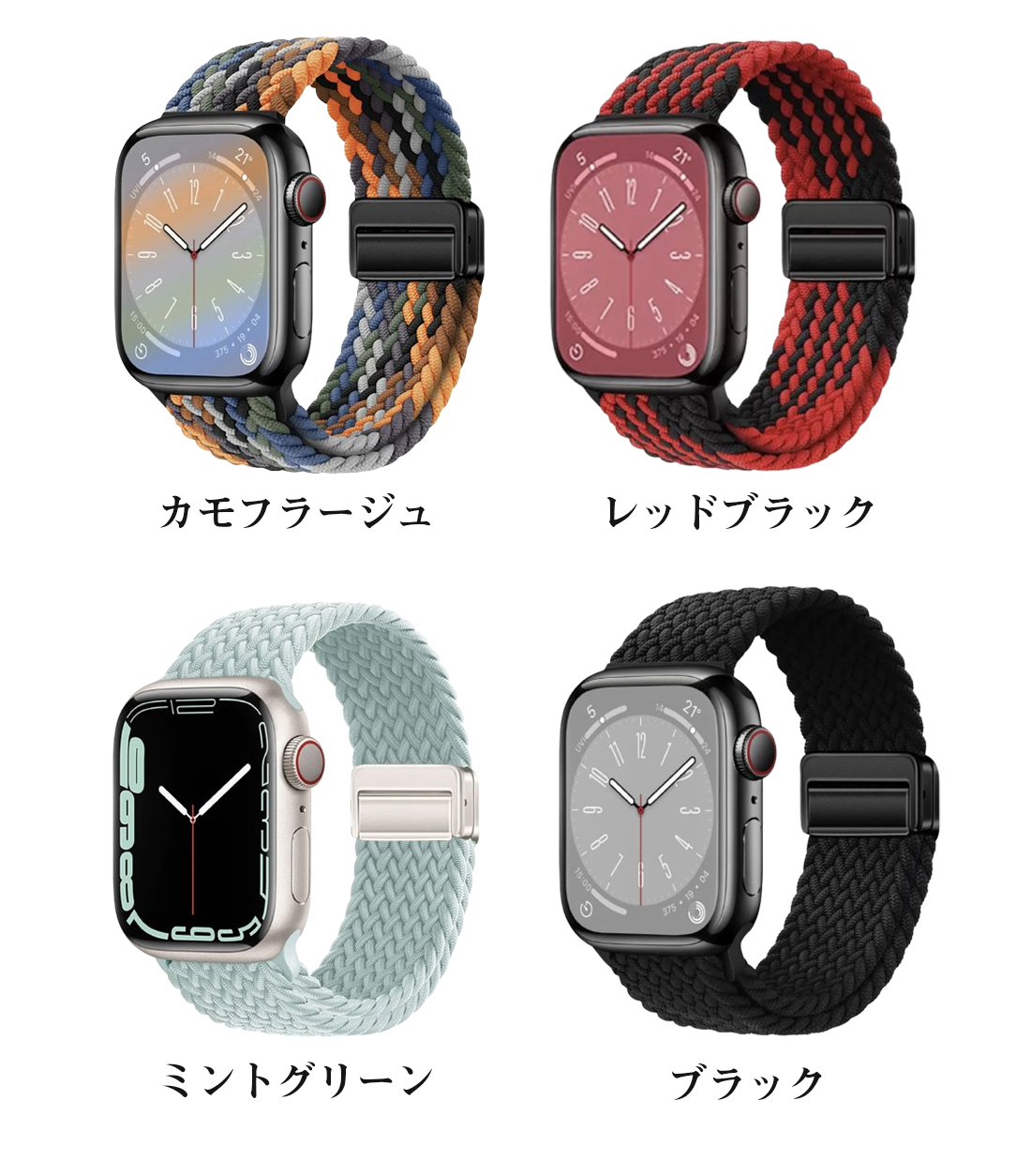 特徴 最新進化アップグレード版のブレイデッドのマグネットで簡単に装着が可能ナイロン編み大人らしくアップルウォッチ用のバンド。春夏にも活躍する女性に人気のカラーが豊富。きれいめからカジュアルまで幅広いコーデに大活躍。
