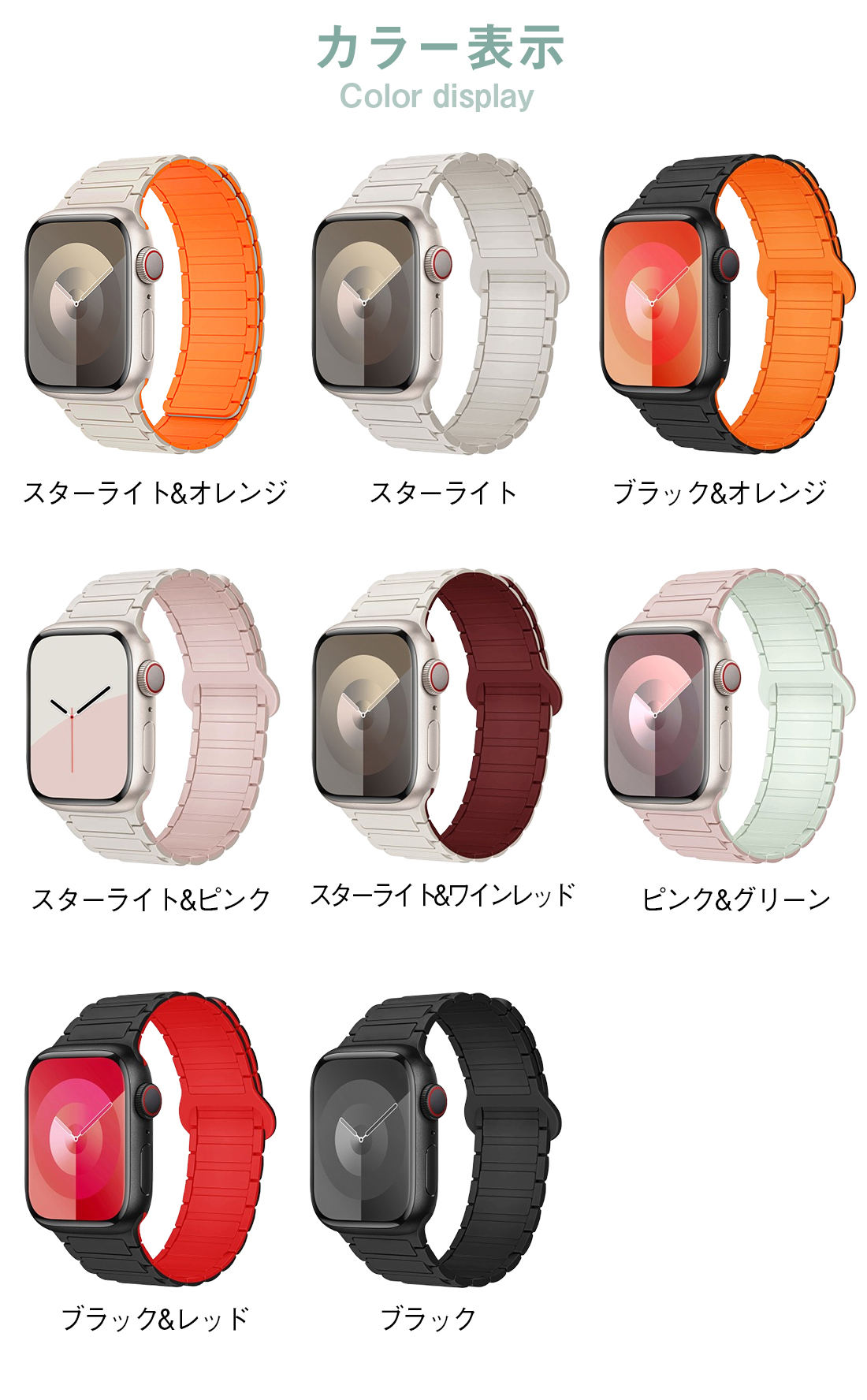 アップルウォッチ バンド シリコン マ 腕時計 続々入荷中 38/40/41/42(Series10)mm用 42(Series3/2/1)/44/45/46/49mm用 スターライト スターライト&ピンク スターライト&オレンジ スターライト&ワインレッド オフホワイト&スターライト パープル&ピンク ピンク&グリーン グリーン&オフホワイト ホワイト&ブラック ブラック&ホワイト ブラック&オレンジ ブラック&レッド ブラック&グレー ダークグリーン&ブラック ブルー&グレー ブルー&チョコレート