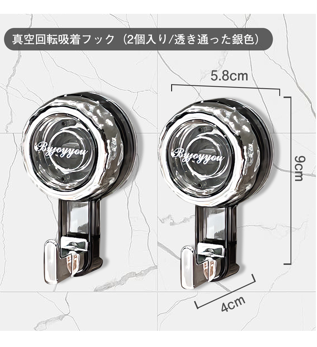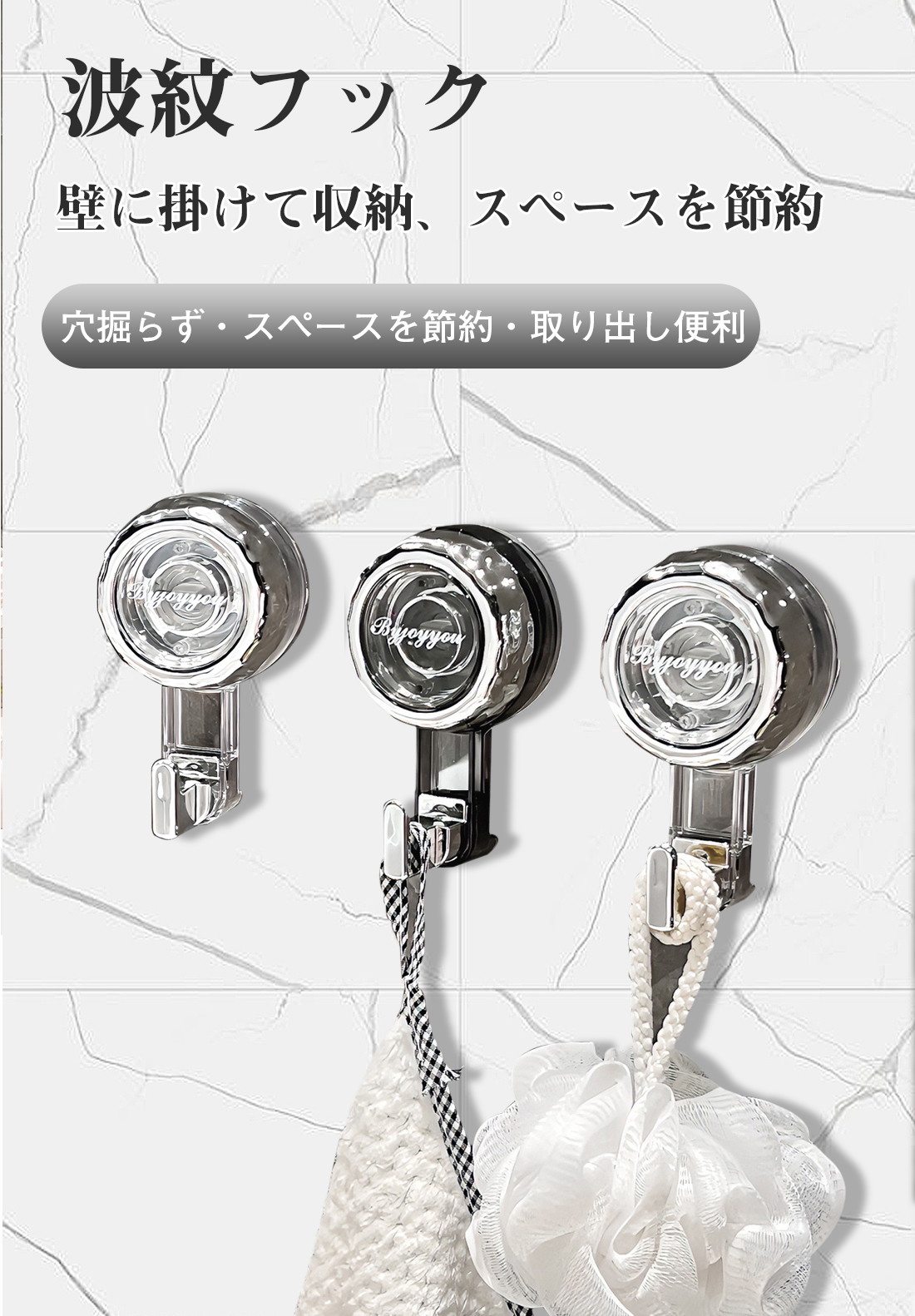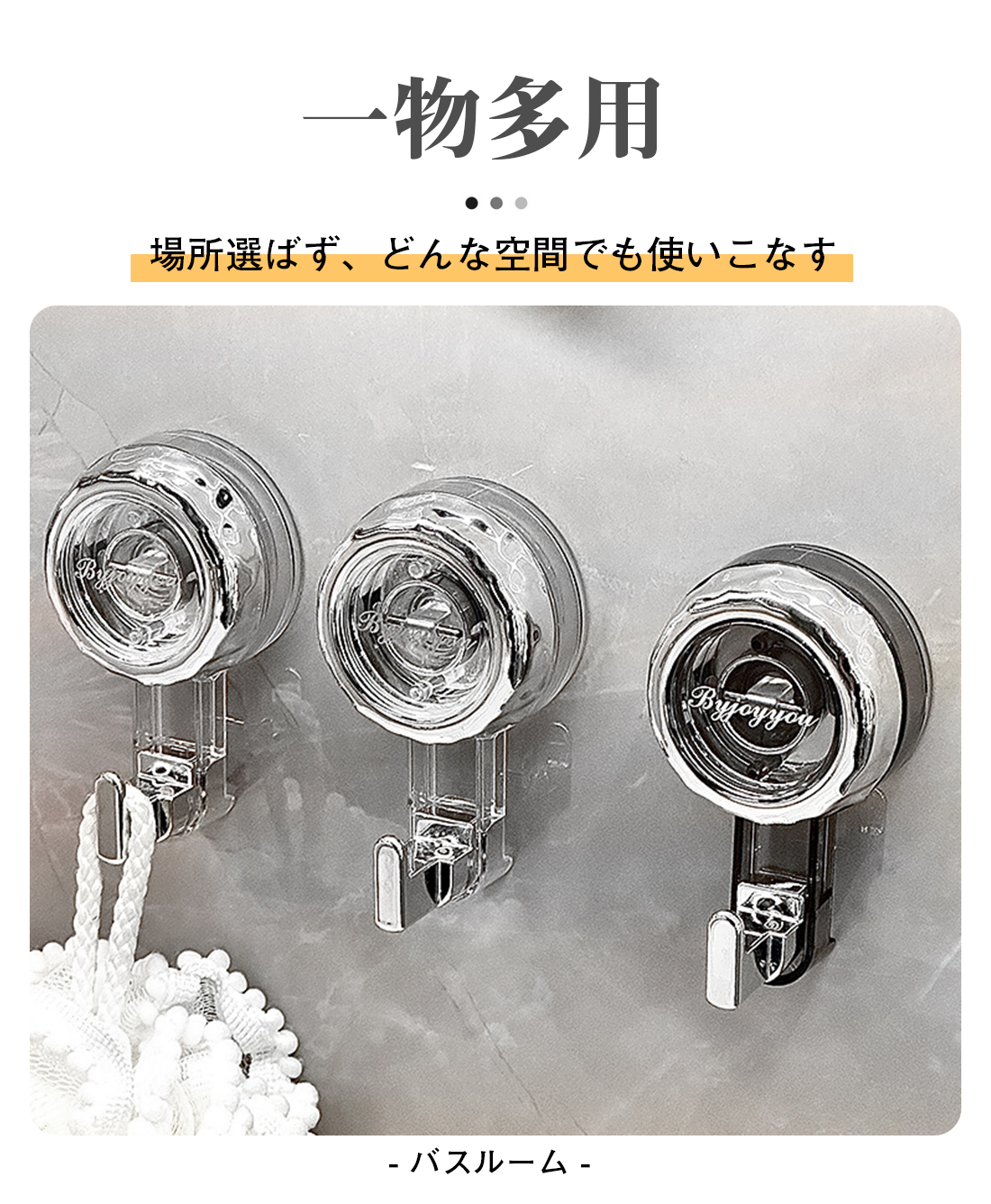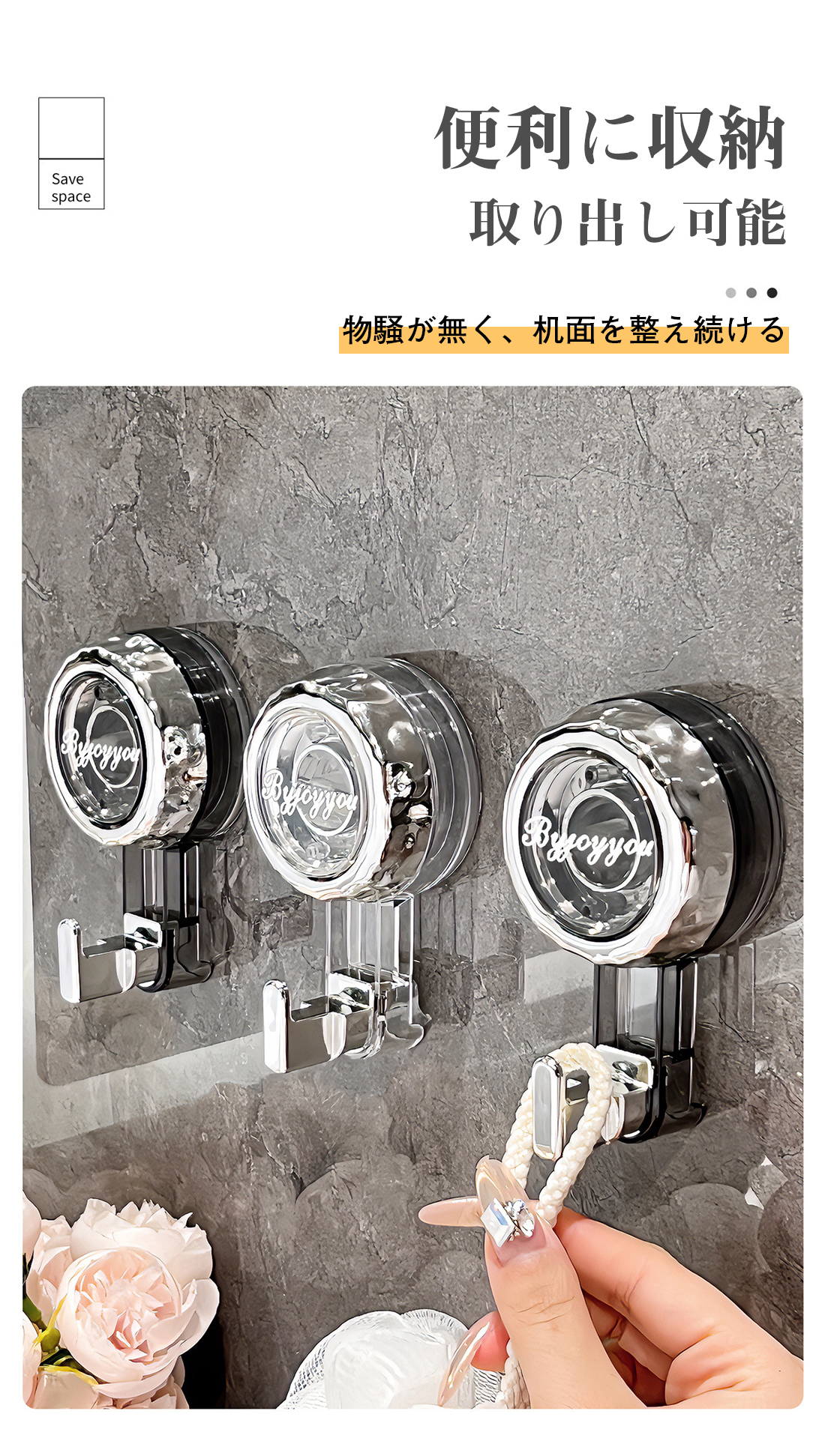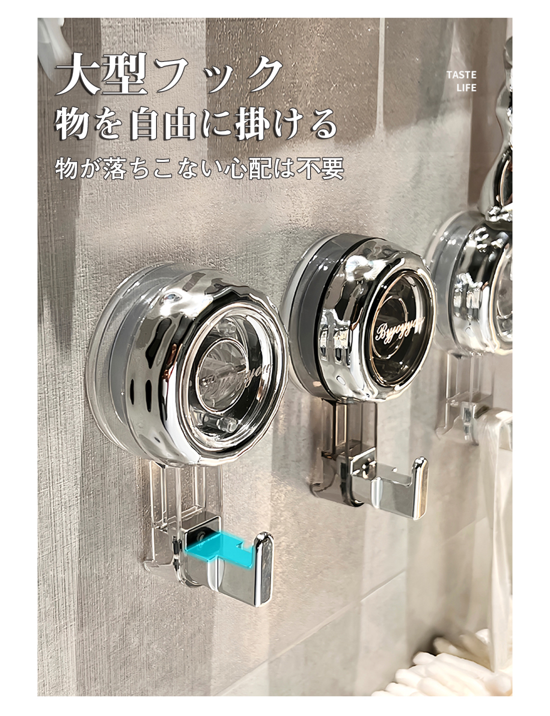【しっかり吸着落ちにくい】耐荷重5kg、色々吊るせてパワフル