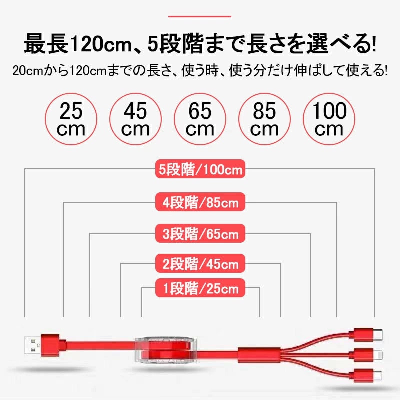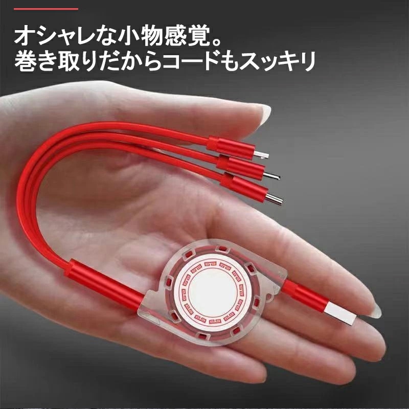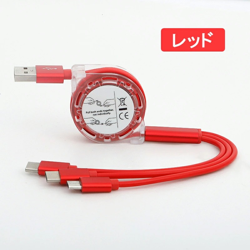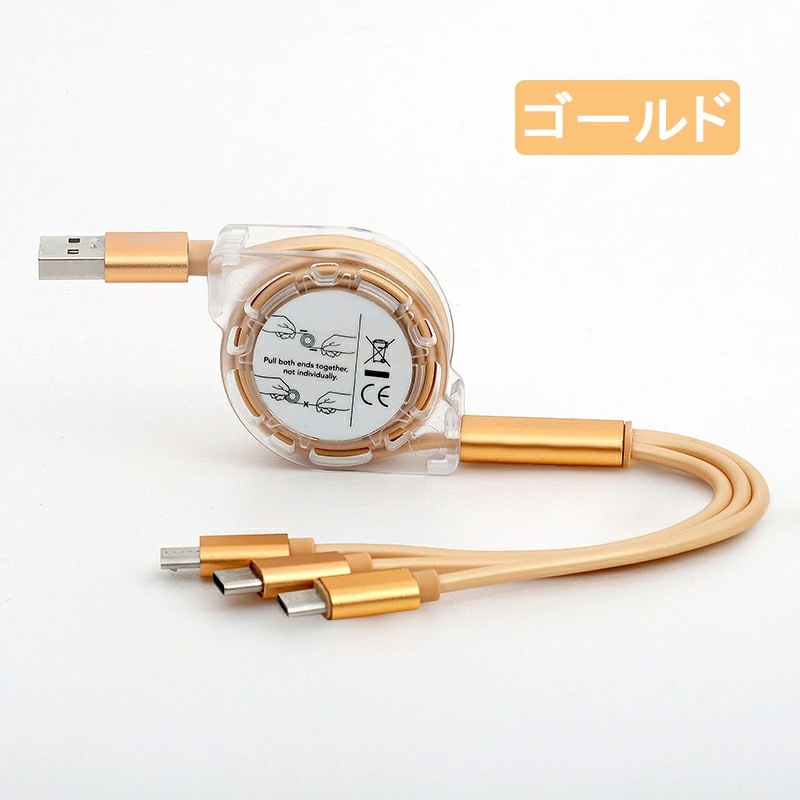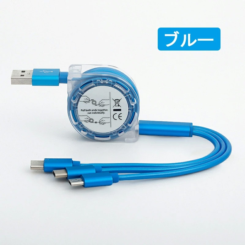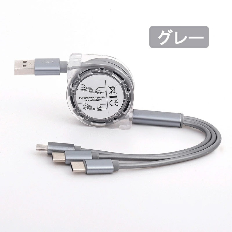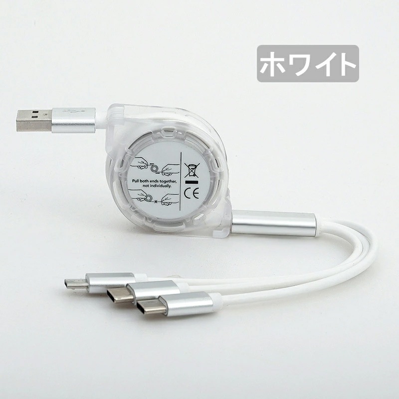 充電ケーブル 3in1 iPhone Android Type-C microUSB タブレット スマホ スマート 充電 ポイント 消化巻き取り式 充電 コード ケーブル品名 充電ケーブル