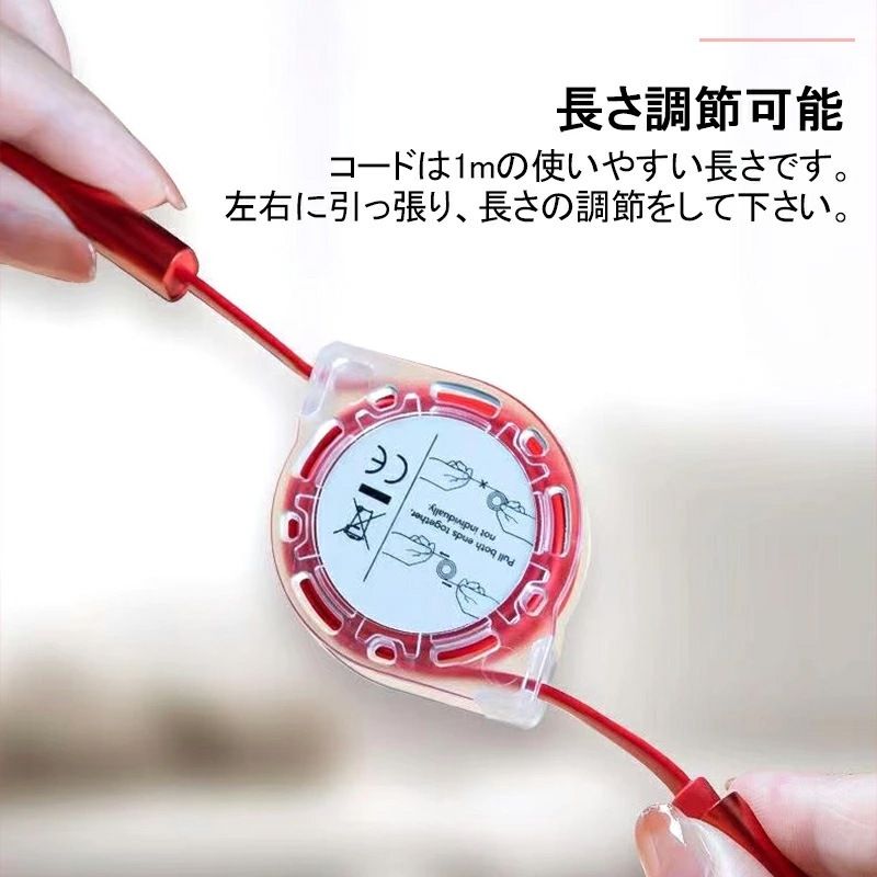 ※ケーブルを伸縮させる際は必ず ケーブルの両端を同時にお引きください。