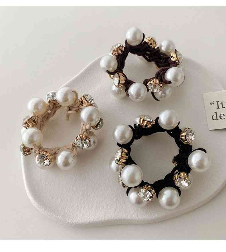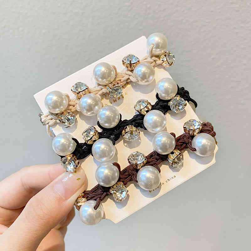 パール付き ヘアゴム おすすめ カジュ キッズ アクセサリー ヘアゴム 豊富な品揃え ブラック+ベージュ ブラック+ブラウン ベージュ+ブラウン ベージュ*2 ブラウン*2 ブラック*2