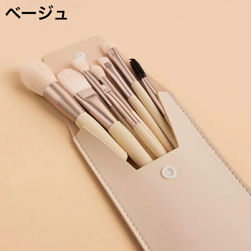 メイクブラシセット 8本セット ポーチ付き フェイクレザー レザー調 レディース 女性 化粧ブラシ 化粧筆 コスメブラシ ふで メイクアップブラシ 多種多様 多用途 シンプル おしゃれ メイク道具 美容 小物 雑貨 女子力アップチークブラシからアイシャドウブラシ、リップブラシなど多種多様! メイクアップに欠かせないメイクブラシ8本セットです♪ レザー調ポーチ付きで持ち歩きにもGood◎